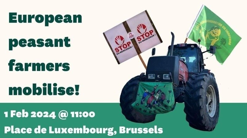 Les syndicats agricoles européens de la Coordination Européenne Via Campesina (ECVC), le syndicat agricole belge la FUGEA et leurs alliés dont le CNCD-11.11.11 fait partie se mobiliseront jeudi 1er février pour dénoncer les impacts des accords de libre-échange sur les conditions de vie des agriculteurs.