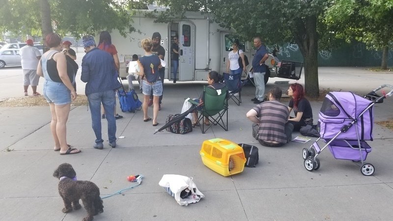 Today, Bronx residents lined up at the low cost vet mobile. Some residents left with their pets untreated since the mobile couldn't take credit cards.