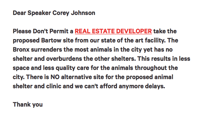 We need ALL animal Advocates. We are going against REAL ESTATE interest that has millions to gain if they stop our Bronx Animal Shelter. We have power when we have People. This is the Final Stage and last chance we have for a Bronx Animal Shelter.