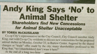 Council Member Andy King Says "No:" also to the concessions for Animal Shelter including: