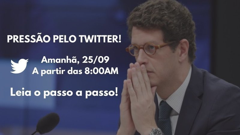 Amanhã (25/09), a partir das 08:00AM (Brasília), faremos uma pressão no Twitter do Ministro do Meio Ambiente, Ricardo Salles. A ação contará com brasileiros, espanhóis e franceses.