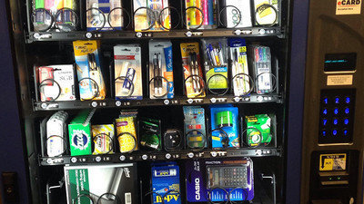 Get a school supplies vending machine in the Haas Library