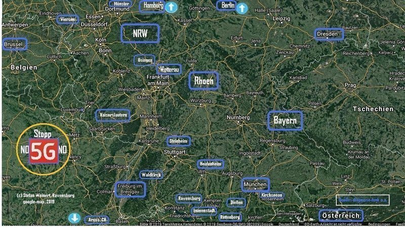 ich habe alle mir bekannten Petitionen bzw. Initiativen gegen 5G in einer Deutschlandkarte (zunächst nur Süd-Ost) verzeichnet. Gerne würde ich auch noch die mir entgangenen Petitionen/Initiativen dazu eintragen. Wenn ihr möchtet, teilt sie mir per Kommentar oder E-Mail mit: stefan.weinert51@gmail.com