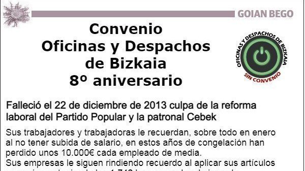 Estamos buscando a 8.000 personas anónimas que quieran recuperar su convenio Oficinas y Despachos de Bizkaia