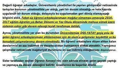 Bizler Karabük Üniversitesi Öğrenci Konseyi ve Karabük Üniversitesi'nin çeşitli fakültelerinden Dikey geçiş sınavı, Yatay geçiş, Çift ana dal programı ve belli not ortalamasının üstüne çıkmış ve üst yarı yıllardan ders alarak yaz öğreniminin de sayesinde tez vakitte mezun olmak isteyen, memleketimize fayda sağlamak ve biran evvel iş hayatına atılmak isteyen öğrenciler olarak;