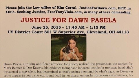 In order to call attention to Dawn’s case, solicit investigative leads from the public and lobby government officials to join calls for a new investigation into Dawn’s death, Dawn’s supporters have organized a rally on June 25, 2025 – 11:45 AM – 1:15 PM at the United States District Court 801 W Superior Ave, Cleveland, OH 44113. The keynote speaker is Attorney Kim Corral and event sponsors include The Ohio Coalition to End Qualified Immunity, Seeking Justice, JusticeForDawn.com, EPIC in Ohio, The Law Office of Kimberly Kendall Corral, FreeTonyViola.com, and others.