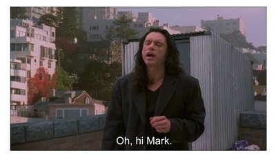 If you’re a fan of the 2003 cinematic masterpiece The Room, or genius, millionaire, playboy, writer/actor/director Tommy Wiseau, you’ll already be familiar with the phrase “Oh hi, Mark.” It has become one of the most notorious and brilliant examples of line reading in film history. Spoken by Wiseau’s character Johnny after seeing his best friend and becoming seemingly so elated he loses all train of thought, it echoes the feeling fans get when quoting the movie together. Pure joy.