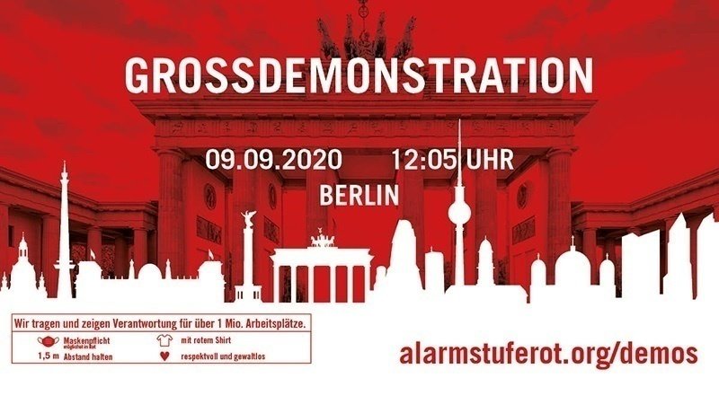 Unsere Demo richtet sich nicht gegen die Maßnahmen der Regierung zur Eindämmung des Infektionsgeschehens, sondern gegen die Art und Weise, wie die Regierung den sechstgrößten Wirtschaftszweig Deutschlands wissentlich kollabieren lässt. Wer zur Demo erscheint und die Mindestabstände und daraus folgend die Maskenpflicht verletzt, wird von der Versammlung ausgeschlossen. Wer rechte oder verfassungsfeindliche Gesinnung zeigt und/oder offen zur Schau stellt, wer die freiheitlich demokratische Grundordnung angreift oder aktiv zu illegalen Aktionen aufruft oder diese selbst begeht, wird von der Versammlung ausgeschlossen.