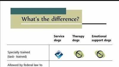 Hopefully this act will also clear the misunderstanding between service dog, for one person with a disability (task trained), emotional support not for public access (not task trained) and therapy for public.