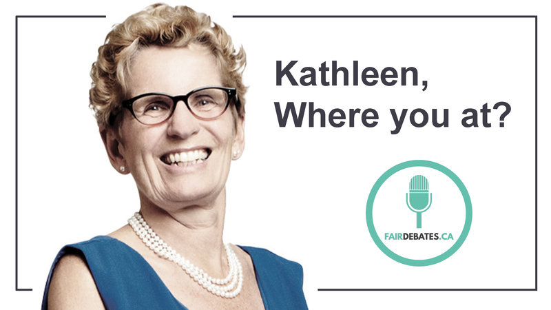 Hello! Last week we asked you to contact Andrea Horwath and ask if she supports fair debates, especially since the NDP claims to support proportional representation (a system which, if used in 2014, would have delivered at least five seats to the Green Party). The NDP chose to ignore our simple question. Earlier this week we reached out to Doug Ford to see where he's at. His party claims to support free markets that foster innovation with low barriers for new competition... so we thought he might support fair debates! But they too have chosen to ignore voters on this issue. So that brings us to the Liberal Party of Ontario. Today, we're asking you to send a polite but firm message to our Premier, Kathleen Wynne, asking her this simple question: Knowing that four parties have met the criteria used by Elections Ontario to receive public funding, do you support inclusive debates that expose voters to all four parties, or do you support an exclusionary rigged process?