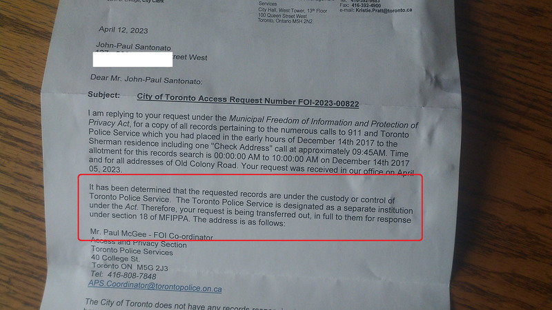 The Toronto Police are not permitting access to records that implicate them for Criminal Negligence resulting in Death x2 and more.