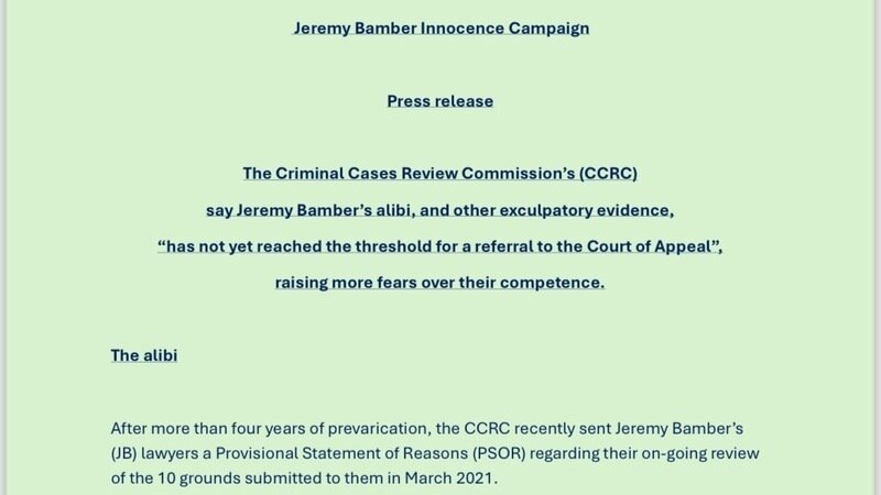 ‘The Criminal Cases Review Commission (CCRC) say Jeremy Bamber’s alibi, and other exculpatory evidence, “has not yet reached the threshold for a referral to the Court of Appeal”, raising more fears over their competence.