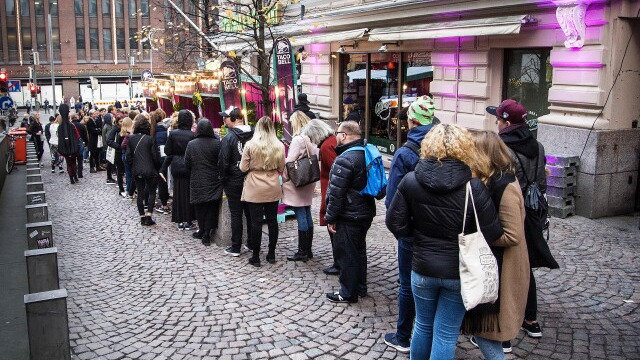 Depicted in this photo is the line at a grand opening of Taco Bell in Finland, clearly the interest is strong in Scandinavia. Look how eager they are to sink their teeth in some fast food taco bliss.