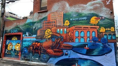 Saint John, New Brunswick has a vibrant street art community. We have pieces from famous artists such as Uber5000 and Dodo Ose, as well as smaller artists. The entirety of uptown Saint Jhon is Coated with Beautiful murals.