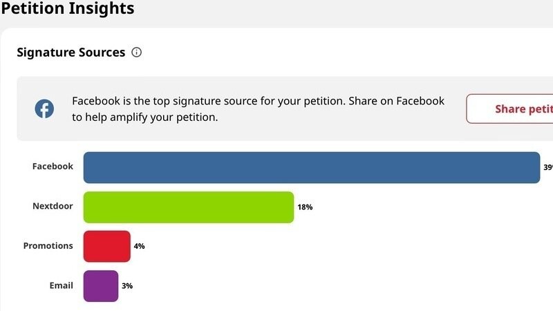 This is growing nicely and I appreciate all you’re doing. We need a lot more to make an impact. Right now, the chart above shows where all the signatures are coming from. I was surprised with the NextDoor app. Please continue to promote wherever you can.