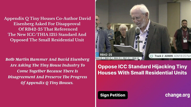 Co- authors David Eisenberg and Martin Hammer of Appendix Q Tiny Houses urged the tiny house industry to come together and preserve the progress of Appendix Q Tiny Houses.