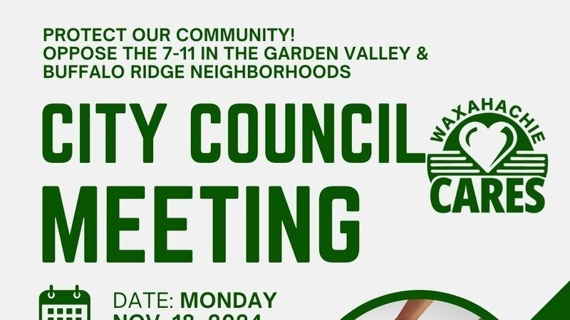 Tonight is our last opportunity to stop the proposed 7-Eleven gas station near Buffalo Ridge and Howard Junior High. The Planning and Zoning Committee has recommended approval, but the final decision rests with the Waxahachie City Council at tonight’s meeting. This is our only hope to get this denied, and your attendance is critical.