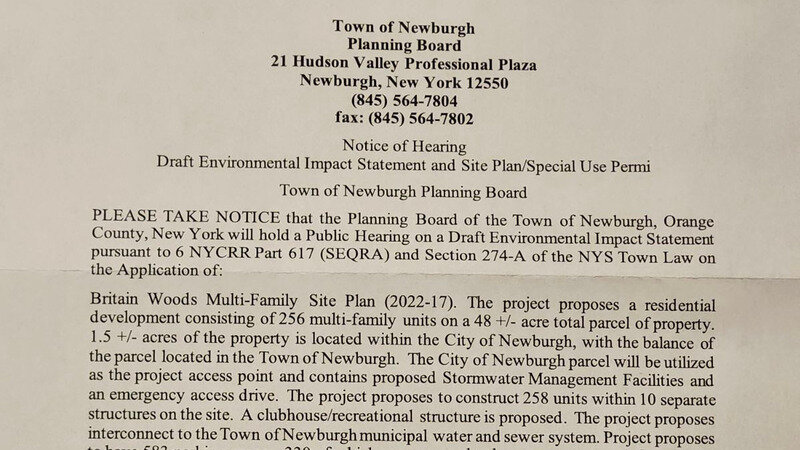 The Town of Newburgh Planning board will hear concerns from the public regarding the 11 building Britain Woods apartment complex slated for Little Britain Rd. between Old Little Britain Rd and Corwin Ct. If you cannot make the meeting on the 1st, you can respectfully express concerns to the Town of Newburgh Planning board via phone (845.564.7804), or e-mail (planningboard@townofnewburgh.org) through Aug 10th. You can also post a comment on our online petition which will be forwarded to the Planning Board.