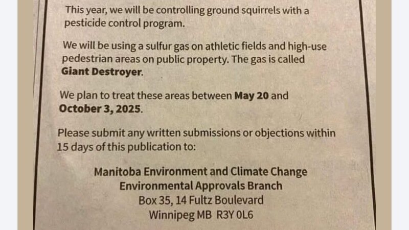 Winnipeg's "solution" is to use a sulfur gas pesticide, known as "Giant Destroyer," to kill the ground squirrel population on athletic fields.