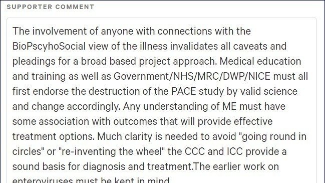 Professor Malcolm Hooper also kindly commented on our petition (see photo). This wonderful advocate was presented with a Victory Award by Invest in ME Research in June 2016 - http://www.investinme.eu/IIMEC11-news%20Pre-Conf-Postscript.shtml