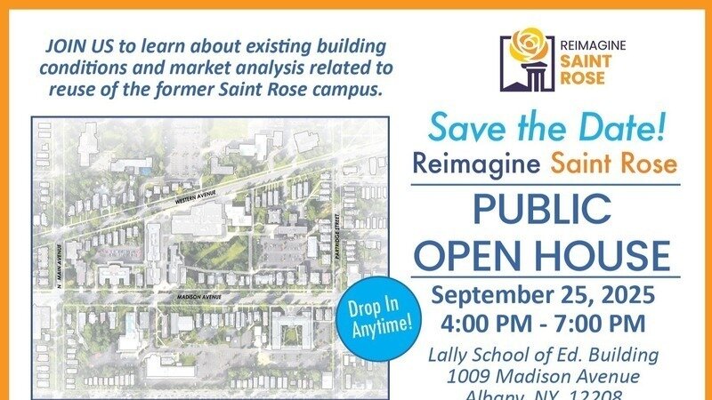 The Reimagine Saint Rose PUBLIC OPEN HOUSE will be held on Thursday, September 25, 2025 at the Lally School of Education Building (1009 Madison Ave., Albany, NY. Parking on Western Ave). All community members are invited and highly encouraged to stop by anytime for as long as you like between 4:00 pm and 7:00 pm to participate. See below for more details!