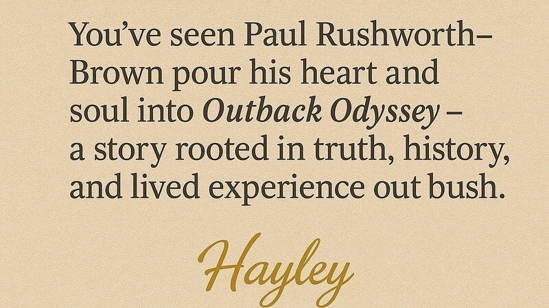 2. “Please consider interviewing Paul Rushworth-Brown about his novel Outback Odyssey. It’s historical fiction that doesn’t flinch — exploring First Nations knowledge, colonisation, and life in the Australian bush through a powerful coming-of-age lens.”