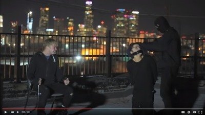 The video later cuts to a rooftop in Downtown LA, where Golbach is restrained to a chair, and threatened with an apparent gun to his head. Brock is shown to have tape over his mouth, at which point Golbach tries to tell him "it's going to be alright". As Pepper holds the gun to Brock's head, Golbach begins screaming for him not to, saying "Please, don't." and "We're just kids from Kansas".