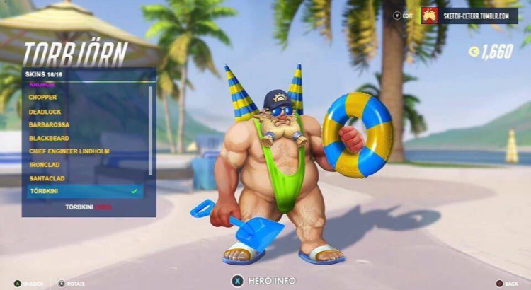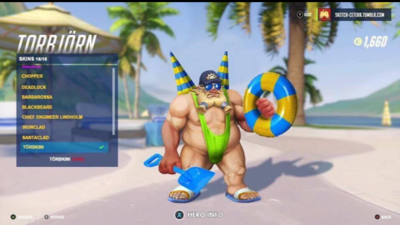 Torbjorn didn't receive a Summer Games skin even though he had many water polo concepts towards, player icons and sprays. I feel torbjorn should get a skin related to the sport, so the Torbkini skin is the way to go!