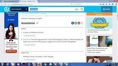 This is grossly untrue, as Assamese as a language is not related to Bengali, although both have similar scripts. Further, Assamese is spoken by people of Assam and never by the people of Bangladesh. Therefore, the dictionary version that 23 million people, roughly half in Assam and half in Bangladesh, speak Assamese is a gross and unpardonable mistake on the part of the editors of the most trusted dictionary in the world. We would like to request the Oxford authorities to undertake research on the issue, find the facts and actual figures, and rectify the mistake immediately.