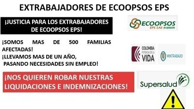 Como extrabajadores de ECOOPSOS EPS SAS en Liquidación, con NIT. 901093846-0, representada legalmente por la agente liquidadora Dra. Army Judith Escandón De Rojas, identificada con cédula de ciudadanía 36.153.128 según Resolución No. 2023320030002332-6 de 12-04-2023; Presento de manera pública esta petición a los organismos encargados de velar por el cumplimiento de los derechos laborales en Colombia.