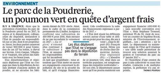 Alors que la Région Ile-de-France réserve sa subvention pour 2017, l’avenir du parc de la Poudrerie est toujours menacé. François Asensi demande une nouvelle fois à l’État de s’engager, en réunissant autour de la table les acteurs concernés pour trouver ensemble une solution pérenne pour le parc de la Poudrerie.