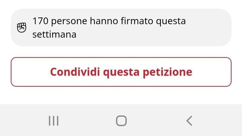 Se volete condividere il link della petizione vi ringrazio per aver firmato. Ogni aiuto è importante. Cordiali saluti