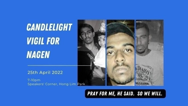 There will be a vigil for Nagen on Monday, 25 April, from 7-10pm, at the Speakers' Corner at Hong Lim Park. Come. Let's fill the park with our bodies in solidarity.