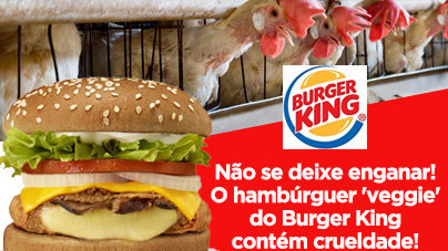 O hambúrguer veggie do #BurgerKing contém crueldade animal. Pare de tentar enganar seus clientes @BurgerKingBR.change.org/gaiolasburgerking