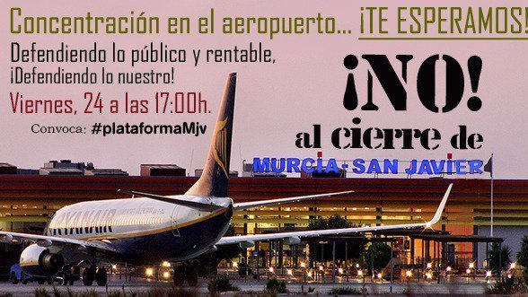Petition updatePAREMOS la privatización de Aena por el interes general.Sensibilizar a los ciudadanos y a los trabajadores, firmar esta petición y animar a otros a que lo hagan.Podemos @podemosmurcia desmiente a la CARM y niega el cierre de San Javier #Aena #Murcia
