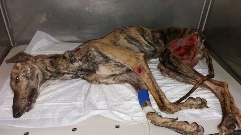 Galgo found by Galgos 112. Died at hospital. April 2017.