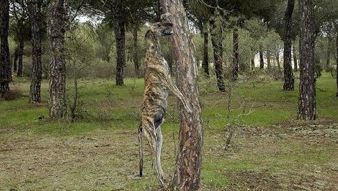 The traditional methods of killing the Galgos are brutal, hanging is common. Galgos that have not been good at hunting are hanged with their back paws left on the ground (the so called ’pianist’). Alternatively, Galgos are left in the forest, tied or with a deliberately broken leg, to starve to death. Others are, when still alive, thrown into empty wells or into steep canyons.