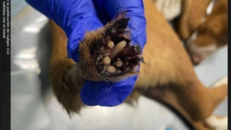 Podenco retrouvé avec la moitié de la queue arrachée.