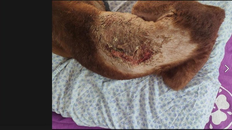 Blessure probablement causée par la course attachée à une voiture pendant l'entraînement. Dans quelques semaines débutera la saison de chasse, date selon région.