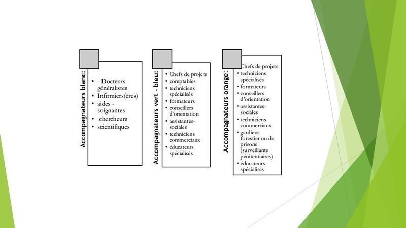 Les accompagnateurs de diverses catégories auront des rôles respectifs.