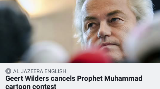 Geert WILDers cancels his WILD cartoon contest..Thank you all for your signatures..MAY ALLAH REWARD YOU ALL FOR YOUR NOBLE DEED ..
