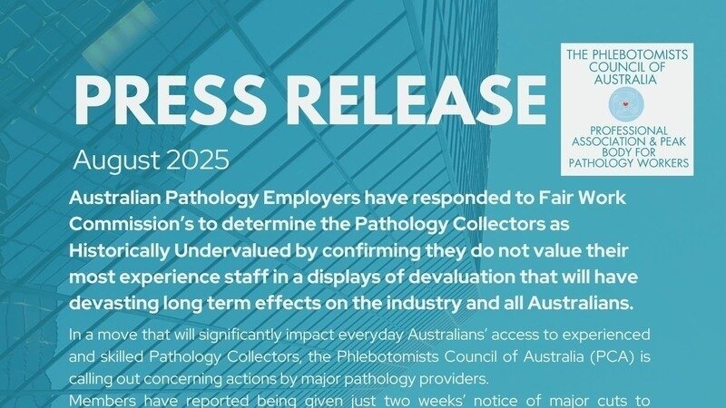 In a move that will significantly impact everyday Australians’ access to experienced and skilled Pathology Collectors, the Phlebotomists Council of Australia (PCA) is calling out concerning actions by major pathology providers.