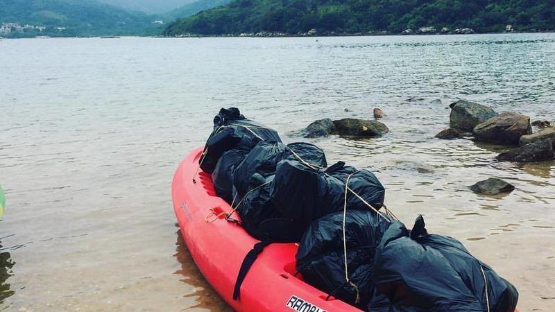 I started the year out right by bringing the battle back to Hoi Ha Wan Marine Park on January 1st. I paddled over to a beach that sees less visitors and cleaned up an 80' stretch of sand. There was quite a bit of waste over there. In fact, there is a lot all around the marine park. While paddling to the the site I found rubber gloves, plastic water bottles, and wrappers floating in the water. You just need to get out into the marine park to see it. So if anyone wants to tell me that marine waste is not a problem in Hoi Ha Wan Marine Park, please prove it to me.