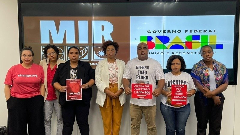 As mais de 3 milhões de assinaturas da petição “Justiça para João Pedro” foram entregues ao Ministério da Igualdade Racial e ao Ministério dos Direitos Humanos e Cidadania. O encontro aconteceu no mesmo dia que completaram-se 3 anos da morte de João Pedro. Rafaella e Neilton, pais do João, foram recebidos pela secretária-executiva Roberta Eugênio, pela secretária adjunta Adriana Marques, e pela assessora especial para assuntos estratégicos Marcelle Decothé.