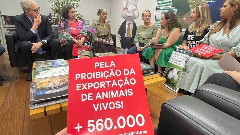 As mais de 560 mil assinaturas da petição “Peça ao Congresso Nacional que proíba a exportação de animais vivos” foram entregues à ministra do meio ambiente, Marina Silva, e à diretora executiva do Departamento de Proteção e Defesa Animal, Vanessa Negrini. A ministra destacou como o movimento une muitas redes e organizações, resultando em um “peso” enorme de milhares e milhares de assinaturas. A conversa foi conduzida por um tom emocionado devido à abertura que o ministério tem dado ao ativismo pelos direitos dos animais.