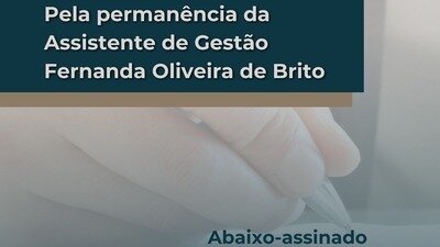 Pela permanência da assistente de gestão Fernanda Oliveira de Brito