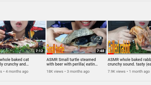 VI ASMR must be stopped for eating cats, dogs, turtles, rabbit and chameleons. Its disgusting not having a remorse for doing such kind of acts
