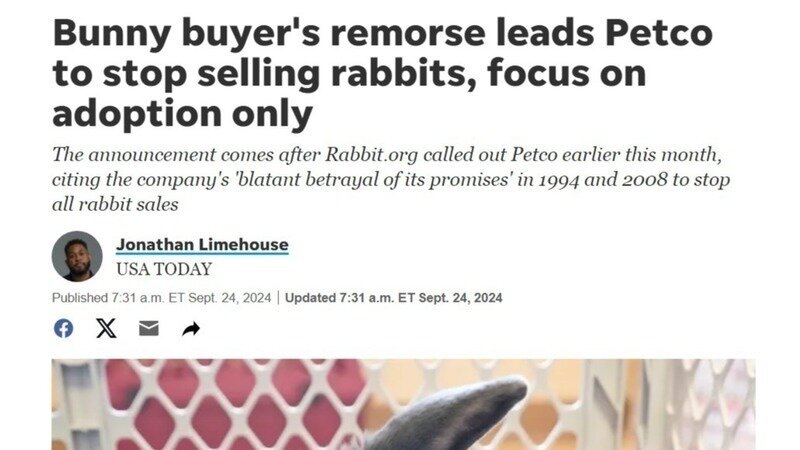 Bunny buyer's remorse leads Petco to stop selling rabbits, focus on adoption only!