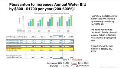 Our water bill would potentially be increasing upto $1700+ (or more)per household on a yearly basis, adding a crushing annual burden. Pleasanton's water rate is skyrocketing by an alarming 300-700%.