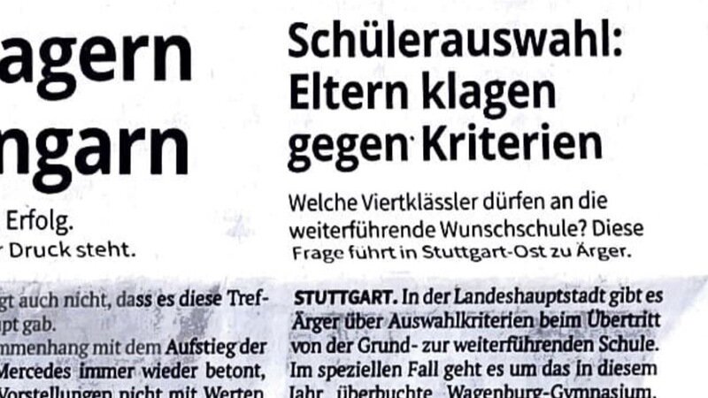 STUTTGART. In der Landeshauptstadt gibt es Ärger über Auswahlkriterien beim Übertritt von der Grund- zur weiterführenden Schule.